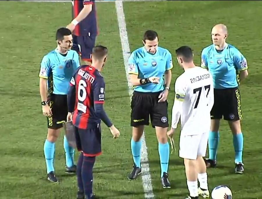 24'pt - Contatto Comi - De Santis al limite dell'area di rigore. Ammonito l'attaccante crotonese per simulazione