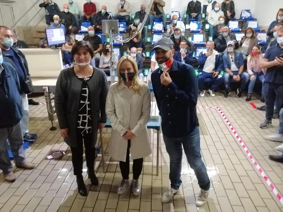 Nonostante appunto l'informalità della visita, tanti i presenti che si sono voluti scattare una foto con la leader di FdI, la candidata sindaco Tintari e l'europarlamentare Procaccini.