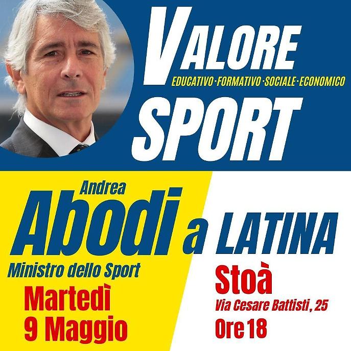 La riforma dello sport, le sue criticità e i correttivi che intende porre in essere il Governo di Giorgia Meloni; le carenze strutturali del capoluogo pontino che rendono difficile, a volte impossibile, la vita degli operatori presenti sul territorio. Di questo parlerà, martedì 09 Maggio alle ore 18.00 allo Stoà di via Cesare Battisti, il ministro dello Sport Andrea Abodi.
