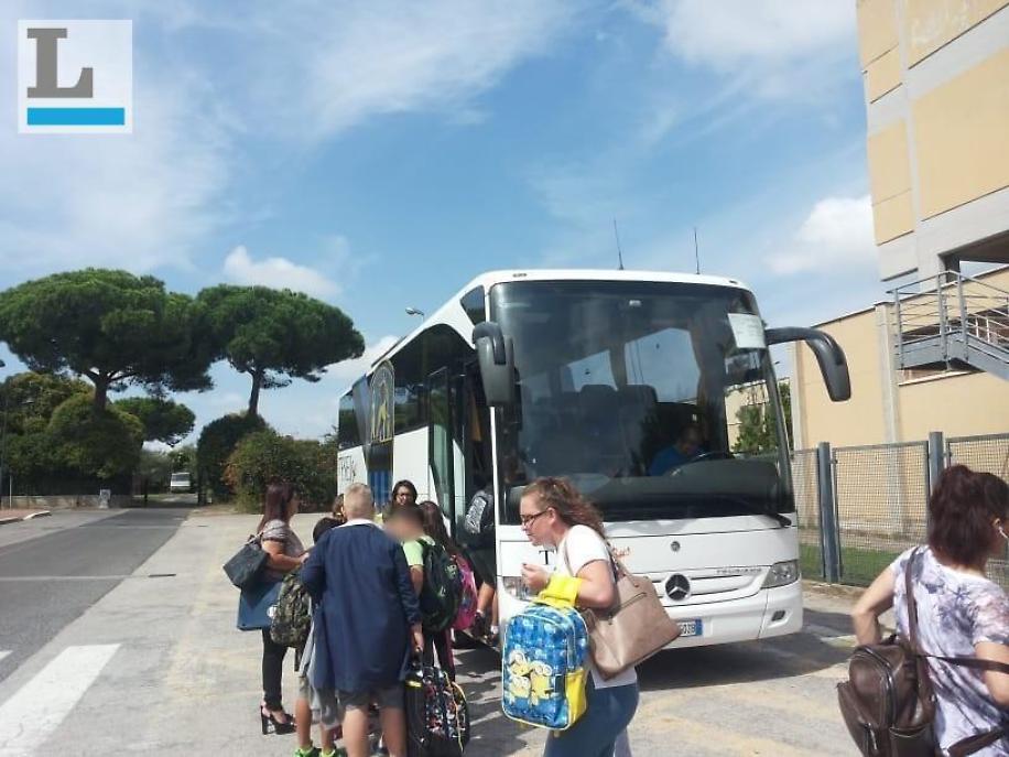 Magliettine verdi con sopra impresso il logo dell'istituto, per essere riconoscibili anche tra la folla e semplificare gli spostamenti. Un'accortezza voluta dalle insegnanti dei bambini che frequentano la scuola elementare di Campoleone e che ieri mattina hanno partecipato alla prima lezione dopo le vacanze estive, inaugurando il nuovo anno scolastico tra i banchi della Menotti Garibaldi di via Enrico Fermi. Nonostante gli sforzi, ci vorrà ancora qualche giorno per portare a termine i lavori presso la scuola Ettore Majorana di Campoleone Lanuvio, che provvisoriamente ospiterà i bambini dopo che il crollo del contro soffitto dei locali di Campoleone Scalo ha comportato la frettolosa ricerca di una alternativa valida in tempi utili per non far saltare il rientro nel giorno previsto. Per non perdere giorni di lezione, l'amministrazione in accordo con la dirigente scolastica ha studiato una soluzione alternativa provvisoria. Così ieri mattina alle 7.30, il pullman messo a disposizione dal Comune ha raggiunto il piazzale della chiesa di San Giovanni Battista e accompagnato i piccoli studenti presso l'istituto comprensivo apriliano, attendendoli poi all'uscita. L'orario di fine lezione è stato anticipato di alcuni minuti, per consentire al mezzo proveniente di Aprilia di raggiungere il piazzale nei tempi giusti e non perdere la coincidenza con il pulmino deputato al trasporto scolastico, che accompagna a casa i bambini abbonati.