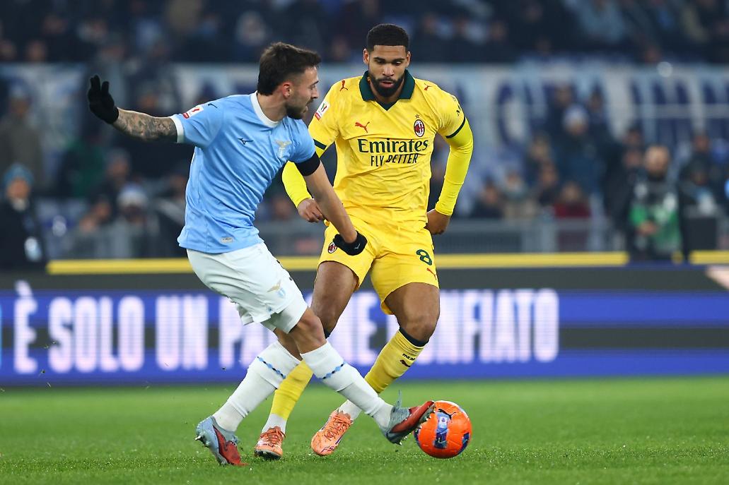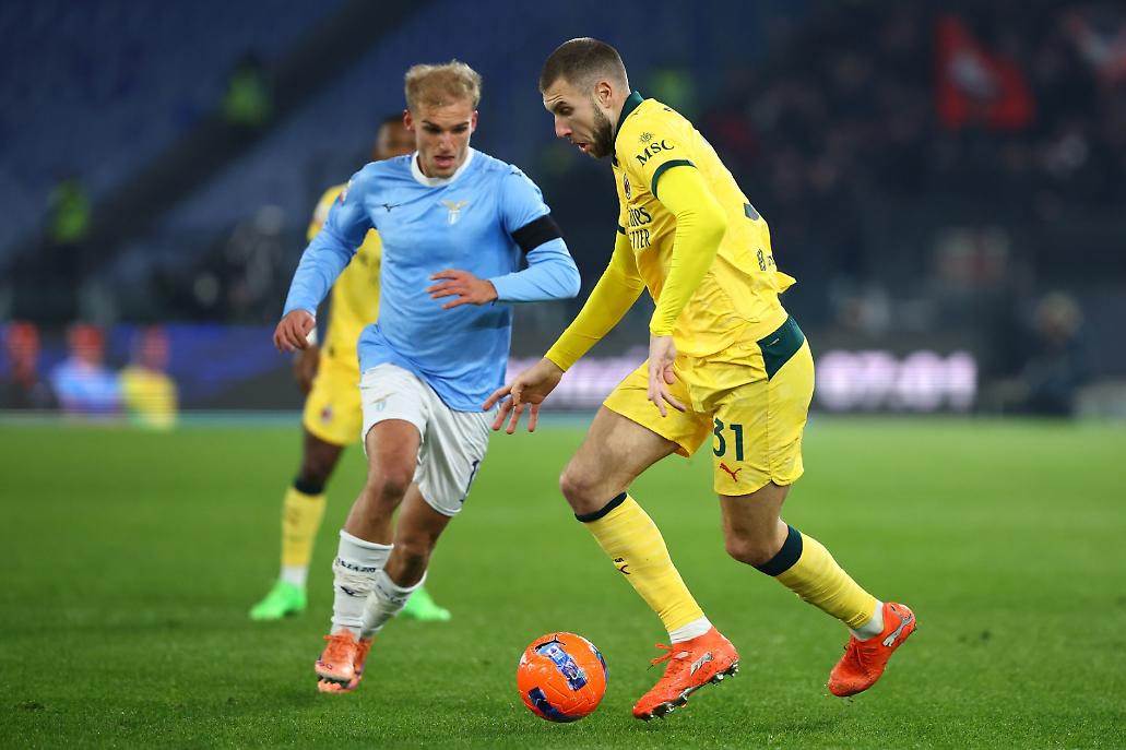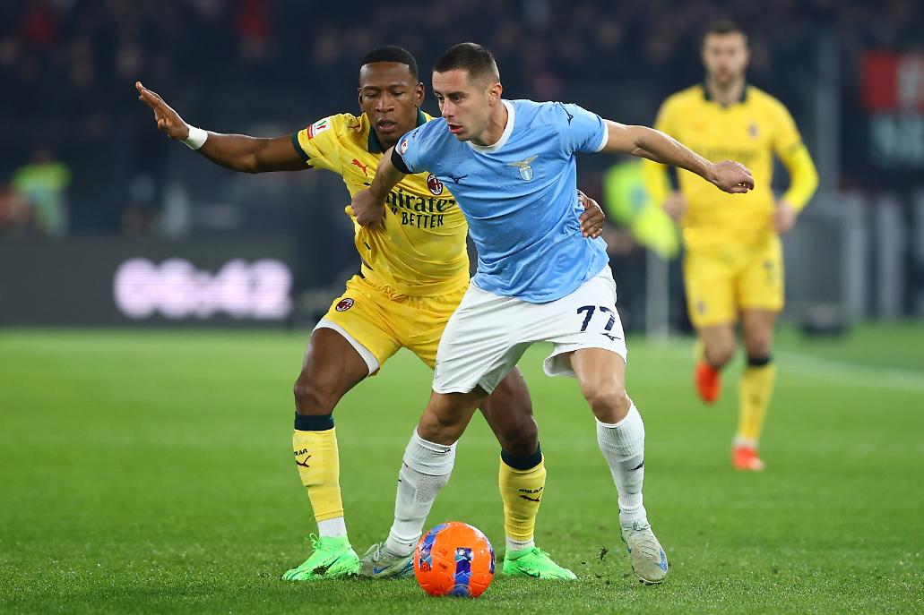 La partita - Il giro palla, da una parte e dall’altra, rappresentava il comun denominatore di una prima frazione avara di spunti particolari. A cercare di più la verticalizzazione era la Lazio e, in una di queste, con gioco di rimessa a tre tocchi (minuto 24), Basic s’involava verso l’area di rigore rossonera: il suo sinistro finiva per sfiorare il montante alla sinistra di Maignan. Il primo ed unico squillo del Milan al 38’: Estupinan operava un cross per Loftus-Cheek, sulla ribattuta arrivava Saelemaekers, chiuso in maniera tempestiva da Romagnoli. La prima frazione era tutta qui con le due squadre incapaci di creare qualcosa di concreto.