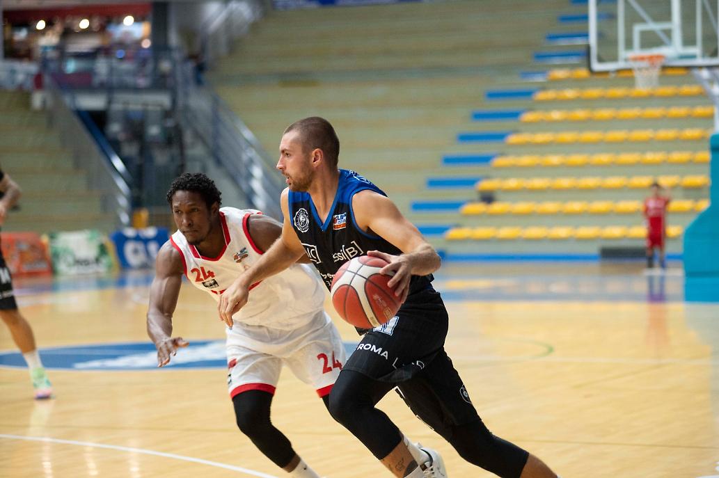 La partita - Percentuali molto basse al tiro e tanti, troppi errori, condizionavano i primi due quarti di gioco della Benacquista Assicurazioni Latina Basket. I padroni di casa ne approfittavano, dominando di fatto i primi due tempi, trovando il massimo vantaggio (44-30 con 2’ e 04” da giocare, ndr), complice la grande verve di Rasio (14 punti per lui all’intervallo, ndr). Nel momento, però, di maggior sofferenza, la formazione nerazzurra trovava modo e tempo per mettere insieme un parziale di 0-10, con un Pastore finalmente ispirato, tornando a -7 ad una manciata di secondi dalla sirena, prima del 47-38 che mandava le due squadre negli spogliatoi.