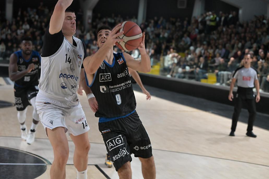 Le “bombe” nel finale prima di Nobile e poi di D’Argenzio a Q”soffocare” la splendida rimonta della Benacquista Assicurazioni Latina, prossima al colpo anche in casa della Peperdi JuvaCaserta, prima del rocambolesco finale. Si ferma dopo cinque successi consecutivi la marcia dei pontini: 75-72 il finale.