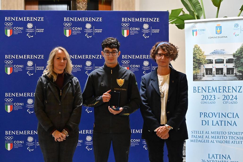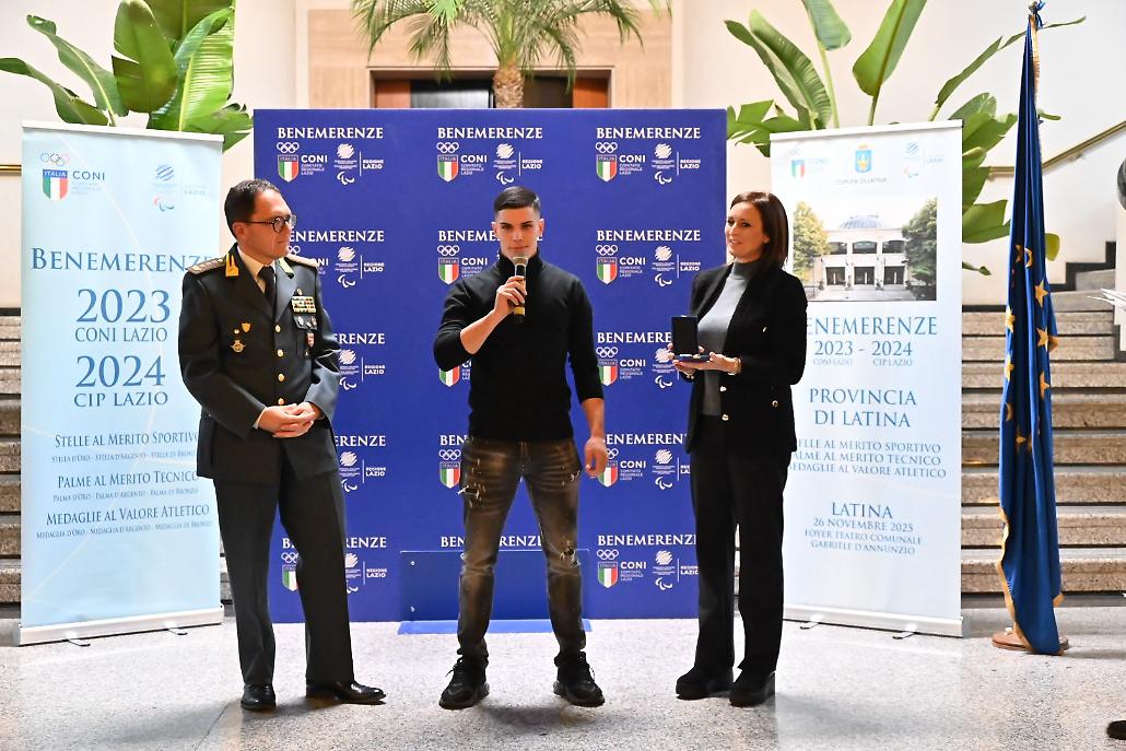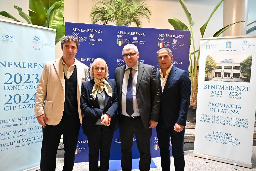 Una serata d'autore, organizzata in maniera impeccabile dal Coni Lazio con l'importante sinergia del Comune di Latina. Grande successo mercoledì sera, 26 novembre, per le Benenerenze Coni Lazio 2023. L’Assessore allo Sport della Regione Lazio Elena Palazzo, il Sindaco di Latina Matilde Celentano, l’Assessore allo Sport del Comune di Latina Andrea Chiarato, il Questore di Latina Fausto Vinci, il Presidente del CONI Lazio Alessandro Cochi insieme al Delegato provinciale Mauro Di Prospero, e i presidenti regionali delle Federazioni Sportive Nazionali, hanno premiato dirigenti, società e atleti della provincia di Latina che si sono contraddistinti nella loro disciplina sportiva. "Mancavamo da tanto tempo a Latina ed era giusto tornare, perché il comune capoluogo sta facendo grandi cose per lo sport, anche a livello di impiantistica. La sinergia con il Comune e, nello specifico, con l’assessore Chiarato, ci ha portato a questa decisione e siamo felici di essere qui e di premiare i campioni di una terra, quella pontina, decisamente prolifica di eccellenze sportive".