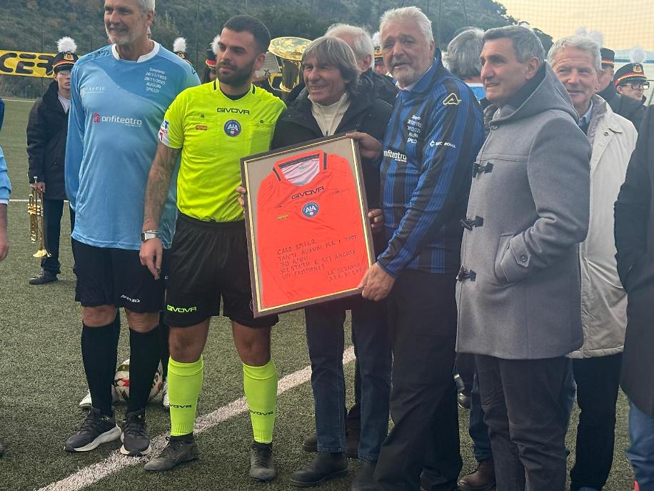 Provato, ma felice. Alessandro “Spillo” Altobelli ha salutato, sabato pomeriggio, 29 novembre, la sua gente, il suo paese, accorso in massa al campo comunale “Cantagalli” per assistere all’amichevole tra la Nazionale Cantanti e una squadra denominata “Altobelli&Friends”.