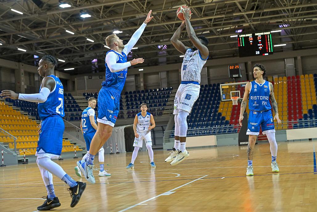La partita - Match già in “ghiaccio” al termine del primo tempo, con la Benacquista a fare il bello e cattivo tempo e a domare, dopo un inizio equilibrato, la resistenza di Fabriano. Dieci gioco a referto nei primi due periodi, il comun denominatore del dominio nerazzurro: 44-34 all’intervallo.