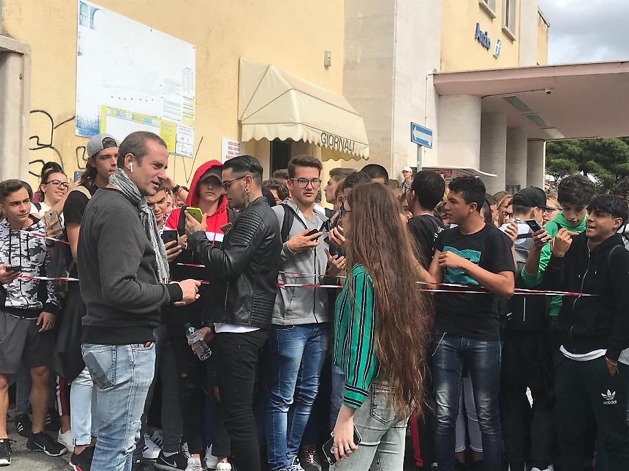 Una presenza, quella del cantante, che ha subito attirato l'attenzione di alcuni giovanissimi studenti di una scuola della zona, che hanno dato vita a un vero e proprio tam tam sui Social e su WhatsApp, facendo arrivare davanti alla stazione ferroviaria del centro città un centinaio di fans in delirio.