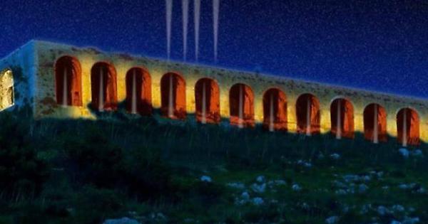 La terrazza monumentale ospitava anche una "roccia oracolare", presso cui, grazie alla risalita di correnti marine, dovevano avvenire dei particolari riti, due piccole cisterne, e la "grotta oracolare", risparmiata dall'opera cementizia all'interno del "criptoportico".