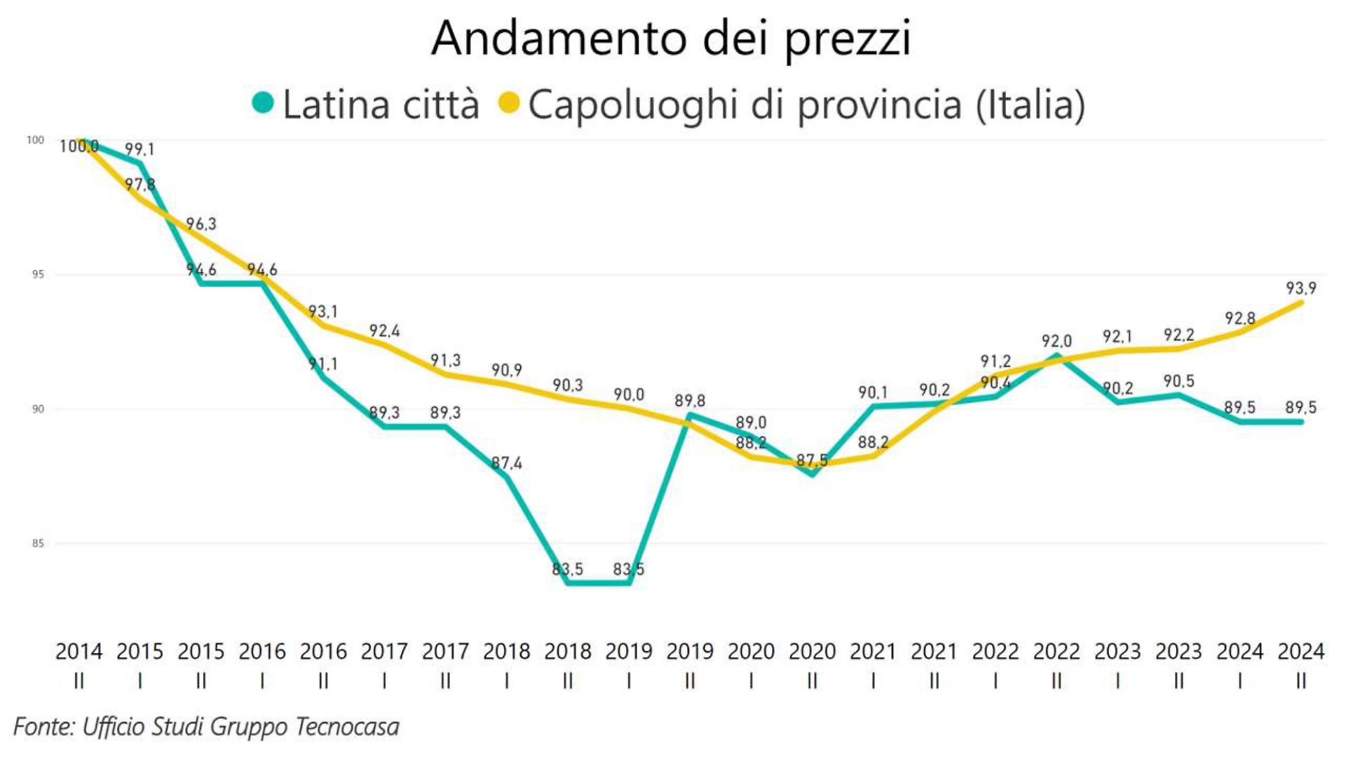 Dal 2014 al 2024, i prezzi medi degli immobili in provincia hanno registrato un calo del 10,5%, un dato più pesante rispetto ad altri capoluoghi italiani, dove la flessione si è fermata al 6,1%. Ma il 2025 sembra aprire una fase nuova. “Le stime ci dicono che il mercato è in ripresa – spiega de Grado – la domanda di case è stabile, ma oggi l’offerta non basta a soddisfare tutte le richieste”.