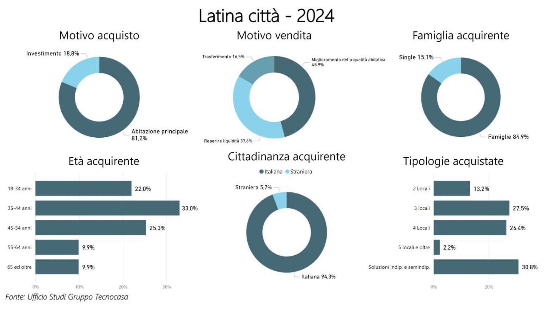 Il mercato degli investimenti, invece, appare in leggero calo: solo il 18,8% delle compravendite riguarda acquisti a scopo di investimento, contro il dato più alto registrato nel 2023.