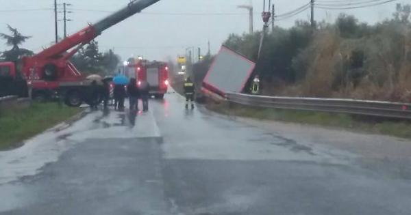 Spettacolare incidente, ieri pomeriggio, sulla Strada regionale 156 dei Monti Lepini. Intorno alle 14.30, un camion con rimorchio ha iniziato a sbandare e ha finito la sua corsa all'interno di un canale che costeggia il tratto di strada che collega lo Scalo di Sezze all'Appia e a Latina, direzione nella quale il mezzo pesante stava viaggiando. A bordo del camion un autista italiano, 53enne, che è riuscito a uscire senza un graffio, ma con tanta paura, dal mezzo rovesciatosi su un fianco. Sul posto sono intervenuti immediatamente una squadra dei vigili del fuoco di Latina e una pattuglia della polizia stradale sempre proveniente dal capoluogo, che si sono occupati della gestione del traffico in quell'area densamente trafficata e del recupero del mezzo pesante incastrato tra la carreggiata e il terrapieno del canale. Nonostante l'impatto violentissimo, avvenuto all'altezza della ex centrale ortofrutticola “Monte Amiata”, l'uomo alla guida è riuscito a uscire indenne dal mezzo, sebbene impaurito dalla dinamica spettacolare. Sulle cause che hanno portato l'autista del camion a perdere il controllo dello stesso si sta indagando, anche se una prima ricostruzione lascia presupporre che alla fine del cavalcavia, un centinaio di metri prima, l'uomo non si sia reso conto, complice la forte pioggia che cadeva in quei momenti, che le ruote si fossero avvicinate così tanto al bordo della carreggiata. A quel punto ogni manovra sarebbe risultata inutile e il mezzo pesante avrebbe sbandato, finendo la sua corsa rovesciato su un lato all'interno del fosso. Veloci le operazioni di recupero del mezzo e la gestione del traffico urbano, che dopo un paio di ore dall'incidente era tornato alla normalità.