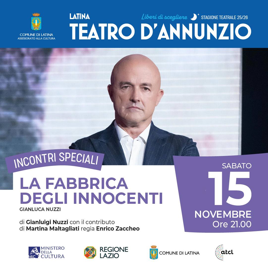 Appuntamento al D’Annunzio il 15 novembre, Prodotto da Stefano Francioni Produzioni, Vincenzo Berti e Gianluca Bonanno per Ventidieci, “La fabbrica degli Innocenti” è diretto da Enrico Zaccheo, sul palco Gianluigi Nuzzi, il bambino che sognava di diventare giornalista.
